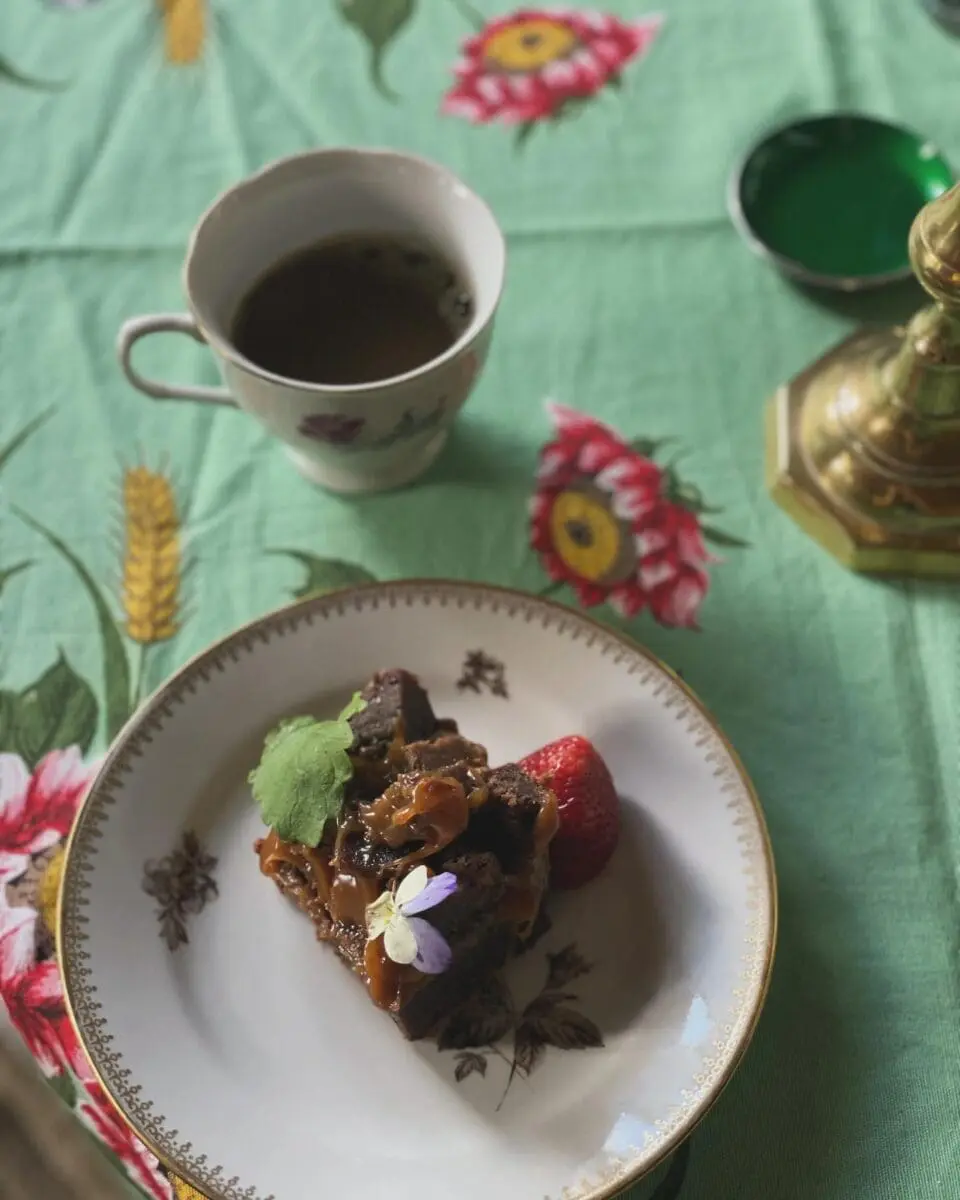 The menu changes continuously based on ingredient availability, but soups, pies, cardamom buns, brownies, and locally roasted coffee from Skogen Kafferøsteri are always on the menu.